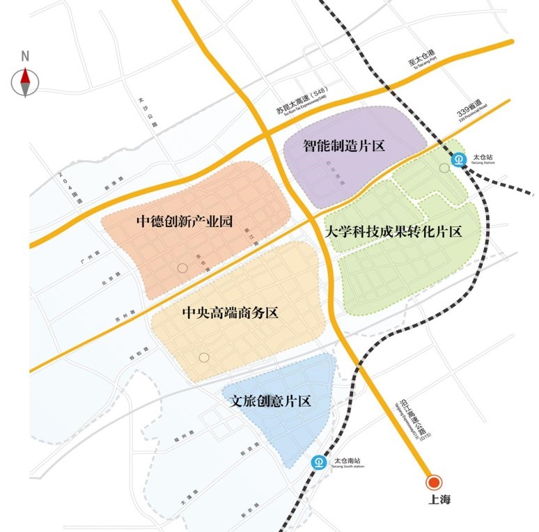太仓高新区按照“一区四核”的空间格局,即中部田园城市核心区、北部智能制造核心区、南部文旅创意核心区、东部科技生态核心区, 成为深度融入上海大都市圈的最前沿和主阵地。